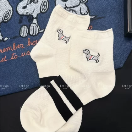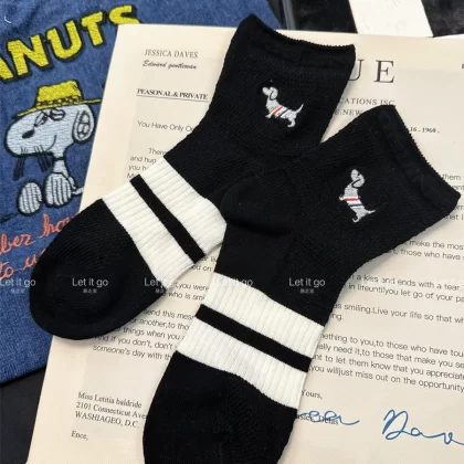 | nameOriginal | Spring and summer thin casual sports low-top college style three-stripe puppy embroidered trendy socks black and white high-end simple socks |