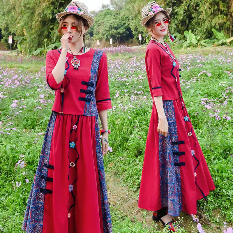 | nameOriginal | Spring and summer vintage song-made printed double-breasted blouse embroidered halter skirt improved antique fairy-style hanfu suit for women |