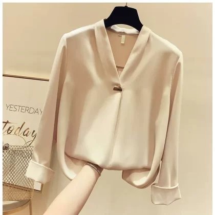 | nameOriginal | Spring, autumn and summer V-neck long-sleeved loose white shirt |