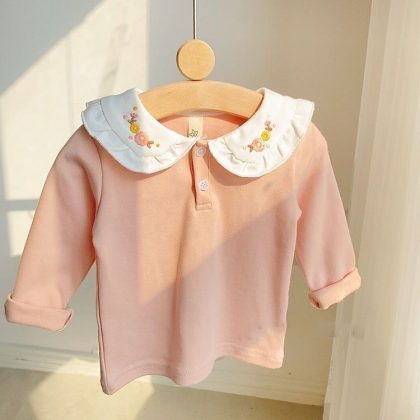 nameOriginal | Spring Baby Girl Long Sleeve T-Shirt Spring and Autumn Base Shirt Top Girls' Lace Lapel Base Shirt 0029 |