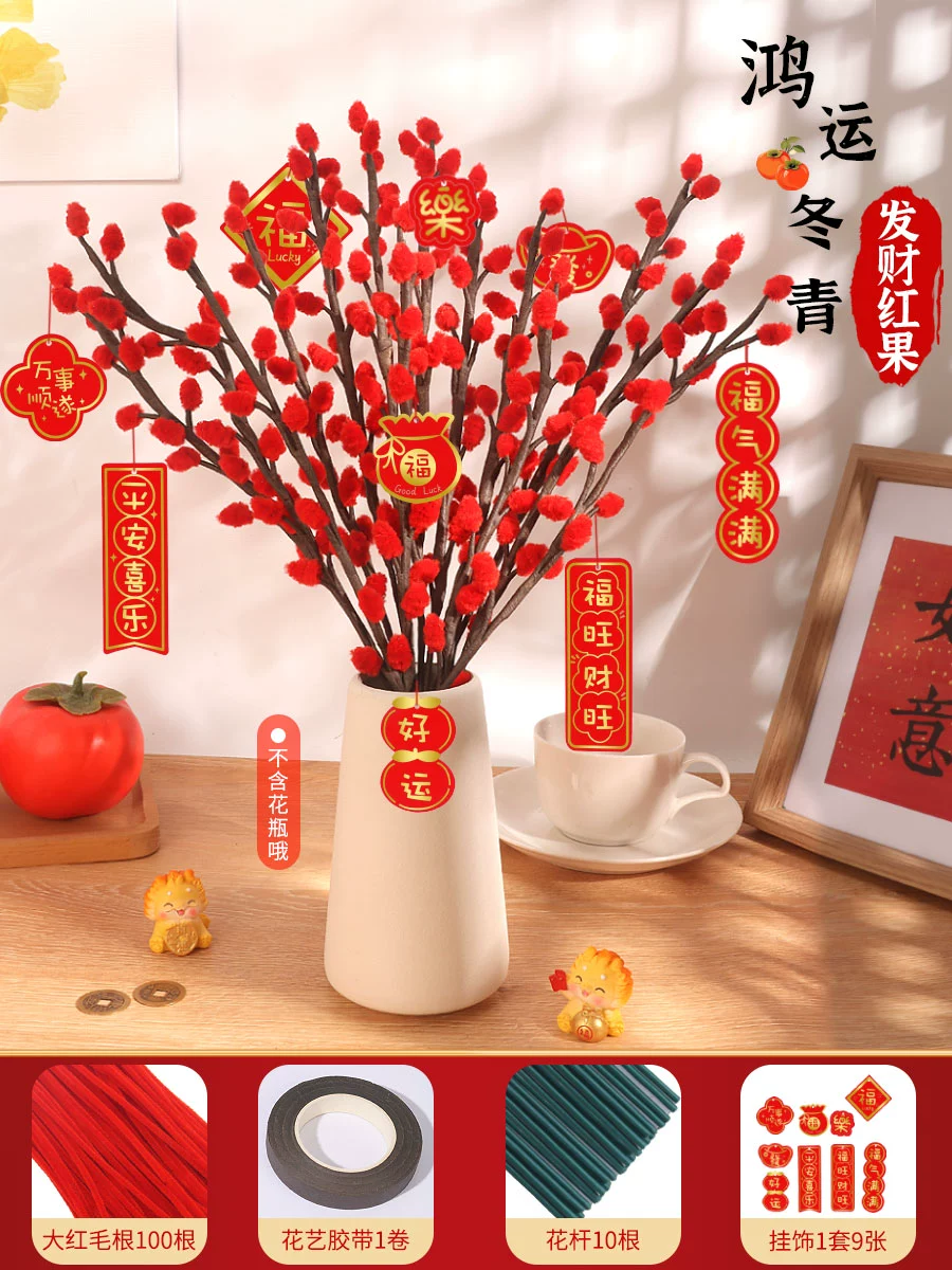 | nameOriginal | Spring handmade diy twist stick bouquet persimmon persimmon wishful hand-held flower persimmon tree decorative hairy root material package |