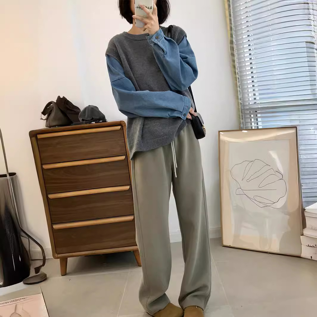 | nameOriginal | Spring Korean style straight casual pants for women 2024 New versatile cotton loose high waist slimming small wide leg pants |