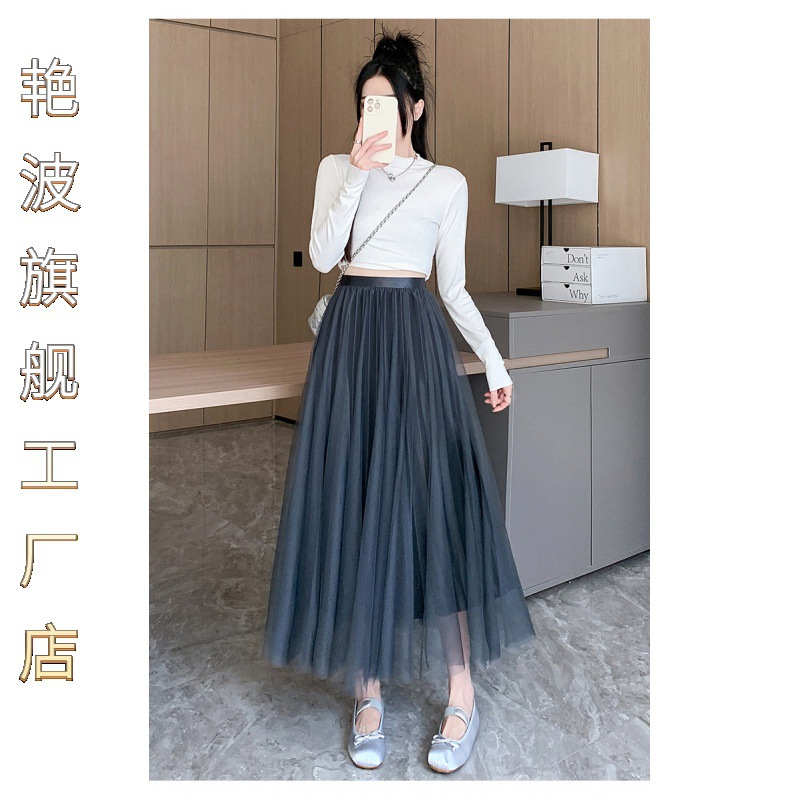 | nameOriginal | Spring mid-length pleated skirt with elastic waist and large size |