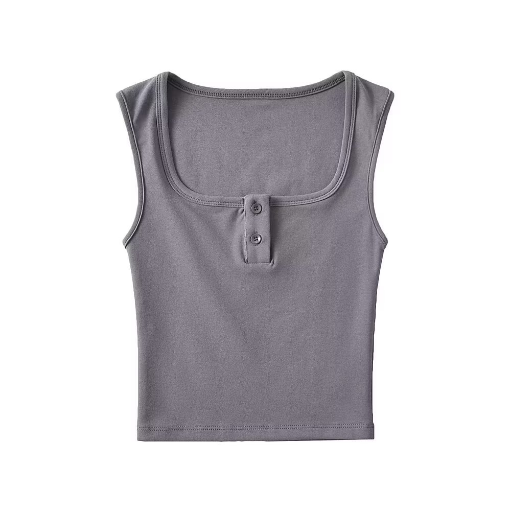 | nameOriginal | Spring new European and American women's sexy square collar two-button vest top C76144 |