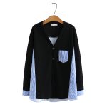 ربيع جديد الموضة مخطط خياطة الخامس الرقبة قميص طويل الأكمام للفتيات طبطب حجم كبير قميص نسائي 2589