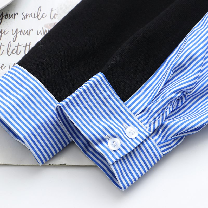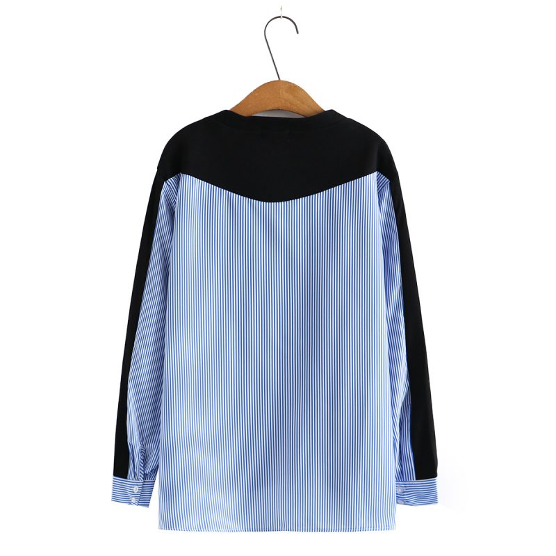 ربيع جديد الموضة مخطط خياطة الخامس الرقبة قميص طويل الأكمام للفتيات طبطب حجم كبير قميص نسائي 2589