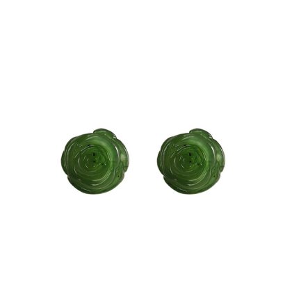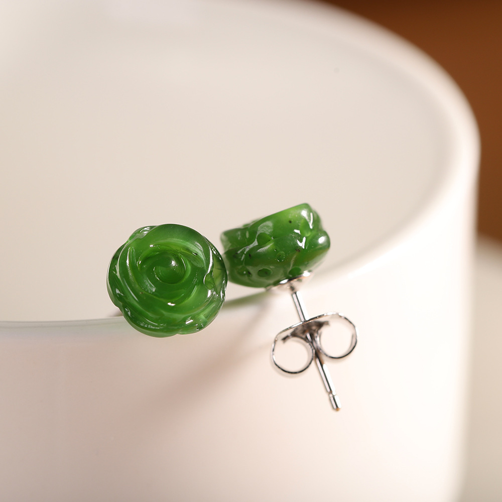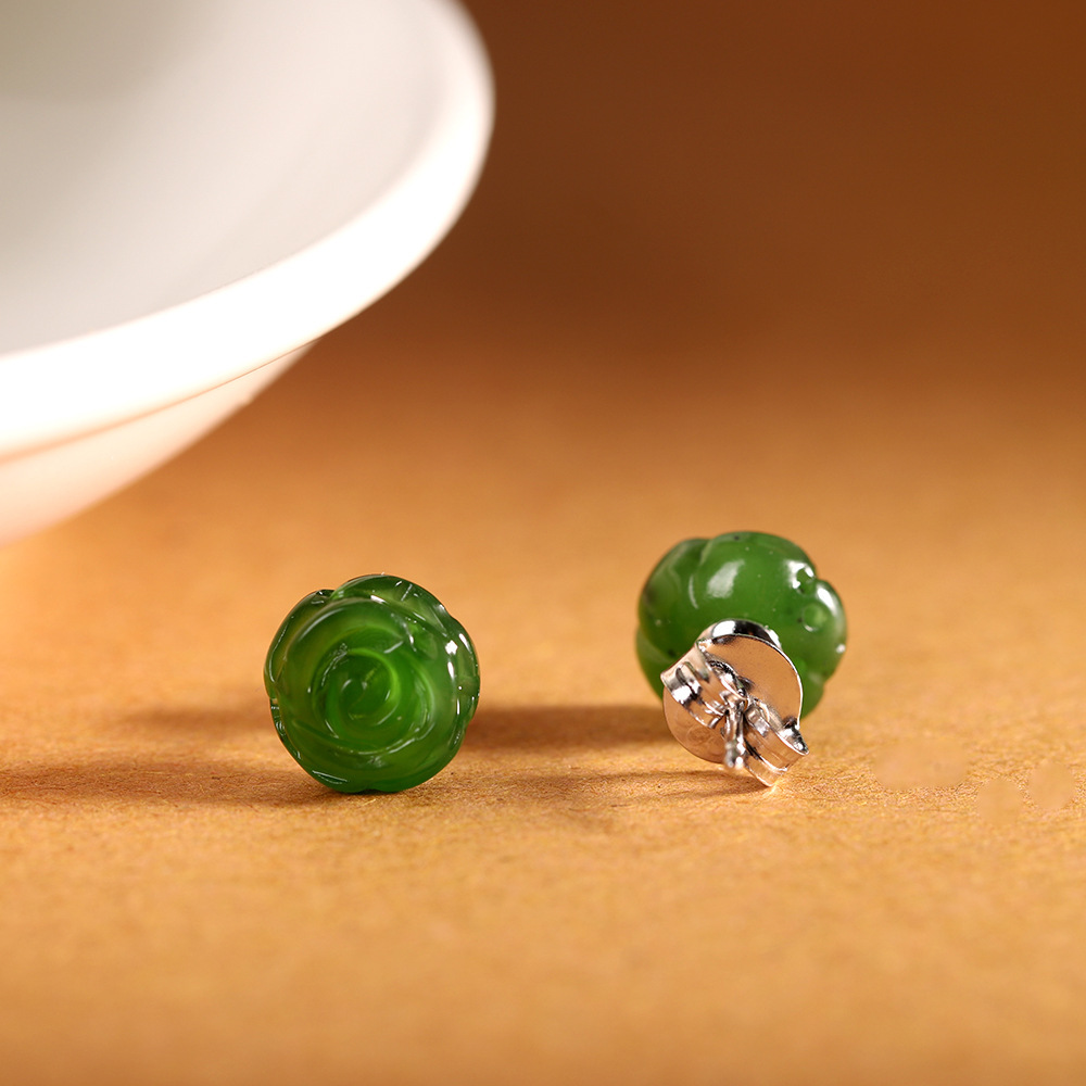 Spring New inlaid Hetian Jasper simple fashion exquisite rose confiscated ear studs cross-border new product