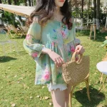 Spring new Korean style thin loose belly-covering women's summer tops women's floral chiffon tops mid-sleeve a-line baby tops