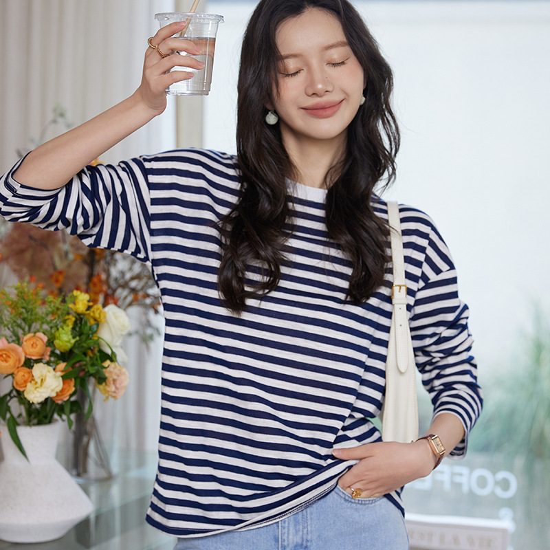 | nameOriginal | Spring New Long-sleeved Striped Base Shirt Women's Korean-style Casual Outer Top Round Neck Thin Slim-fit Pure Cotton T-shirt |