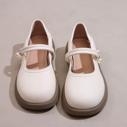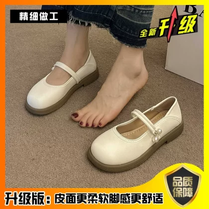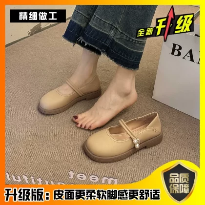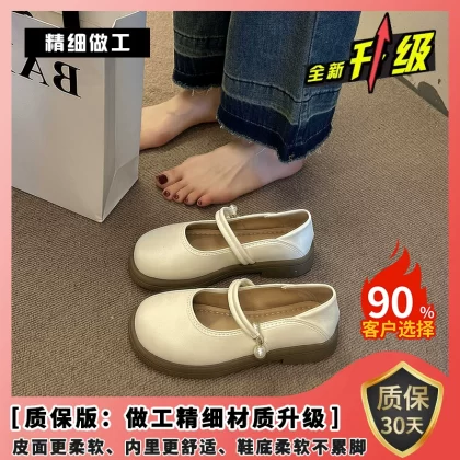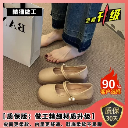 | nameOriginal | Spring pearl shallow round toe versatile flat leather shoes |