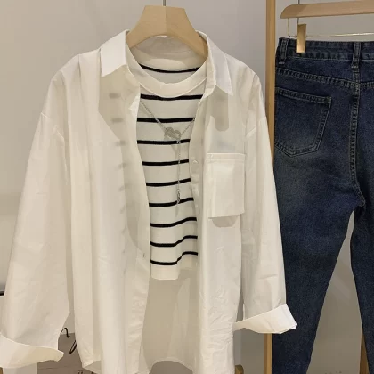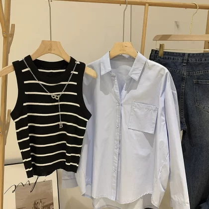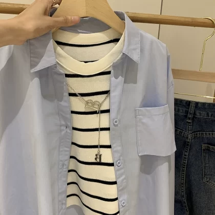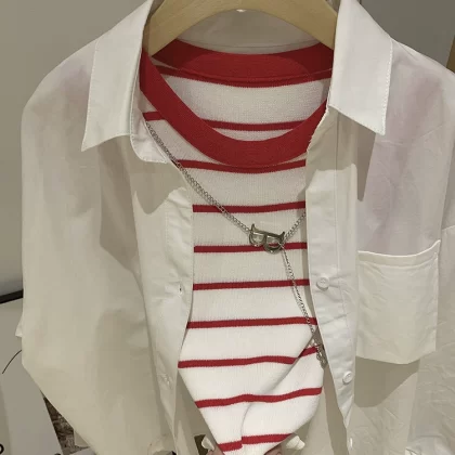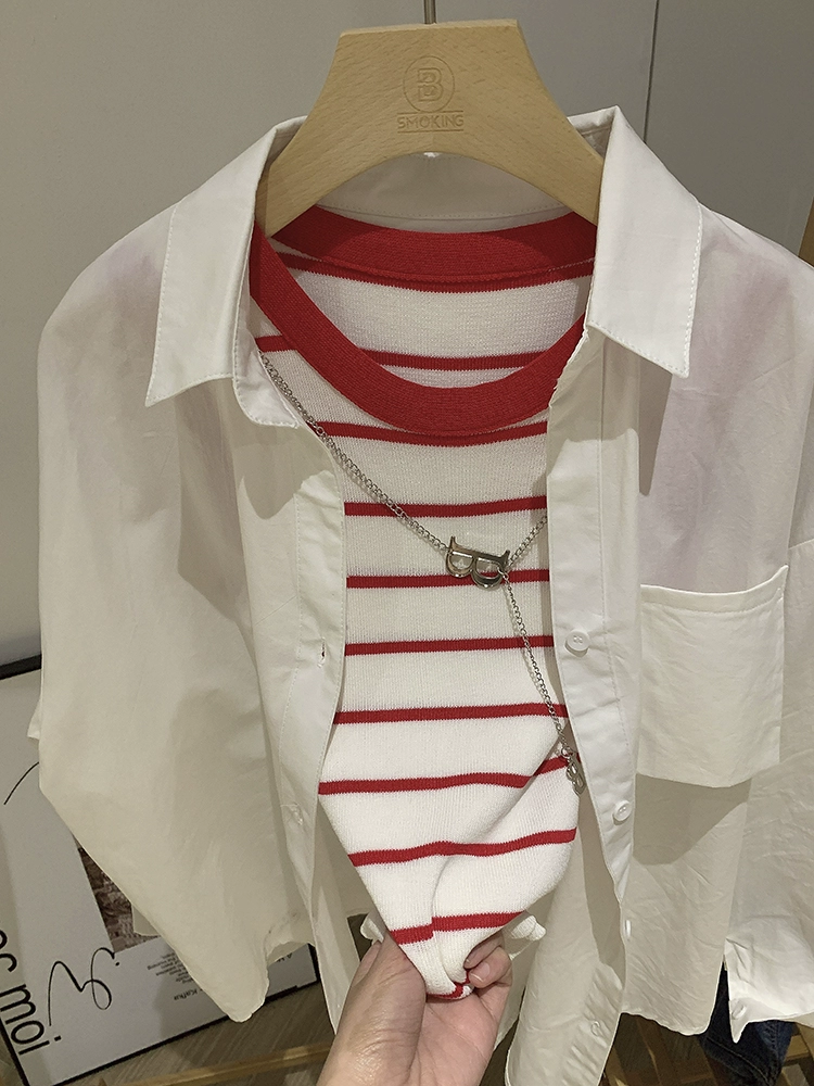 ربيع رفيع النحافة وسترة قميص قميص مخطط ضئيلة