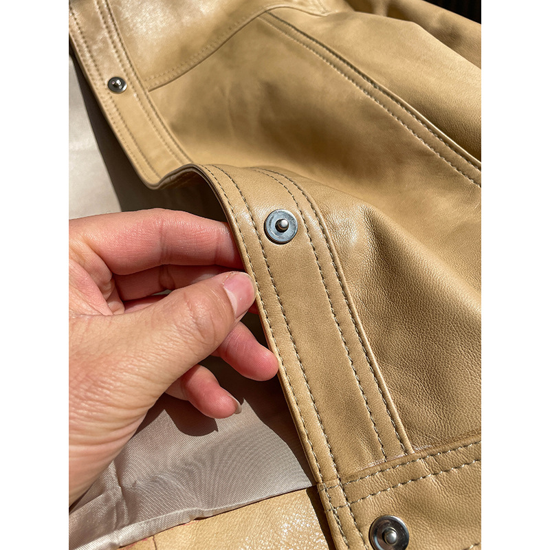 nameOriginal | "Spring style leather coat" British embryo imported Grade A sheepskin leather first layer sheepskin coat stand collar short 2024 |