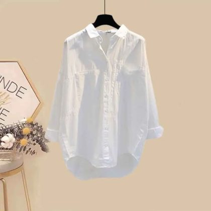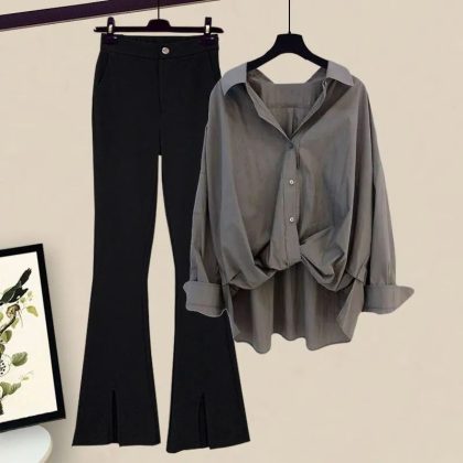| nameOriginal | Spring suit women's 2023 new plus size women's fashion slimming all-match white shirt micro-pants two-piece set |