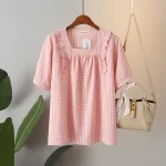 | nameOriginal | Square collar artistic style chic slimming top plaid shirt |