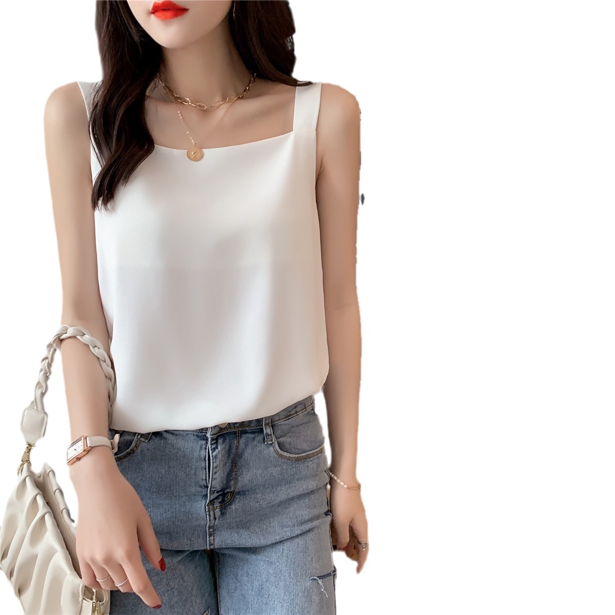 | nameOriginal | Square Collar Camisole Women's Summer Chiffon Loose Black and White Inner Wear Sleeveless Base Shirt Top |