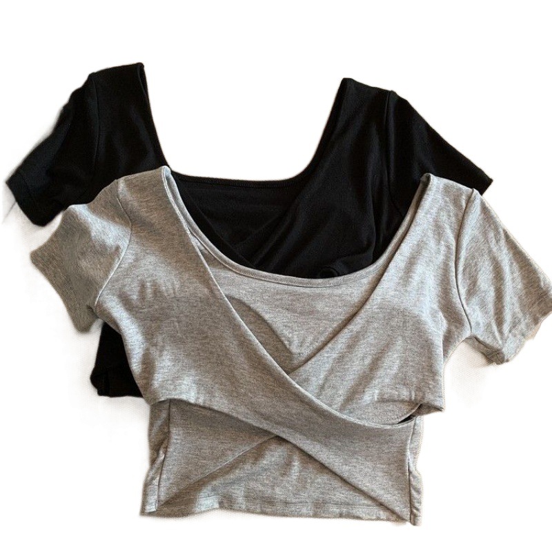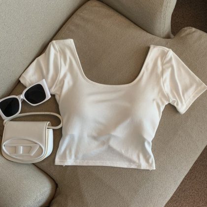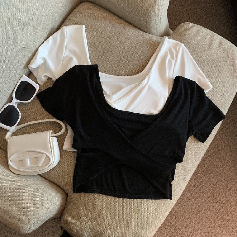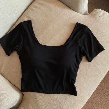 | nameOriginal | Square Collar Short-sleeved T-shirt Women's Summer Sexy Strap Chest Pad Backless BM Pure Spice Girls Shoulder Short Black Top |