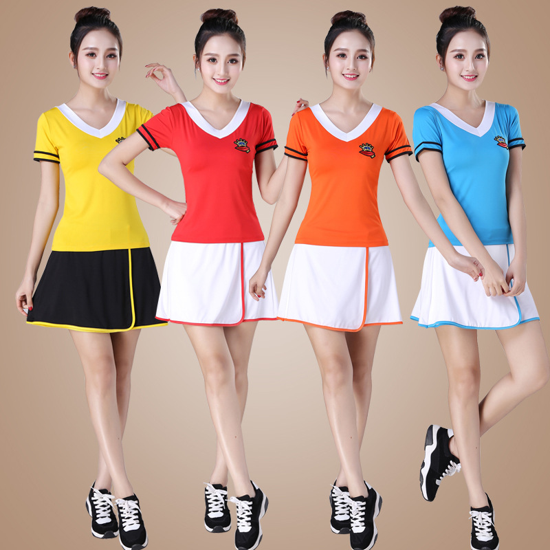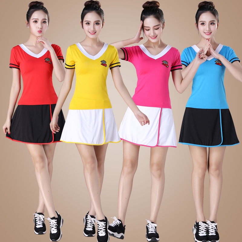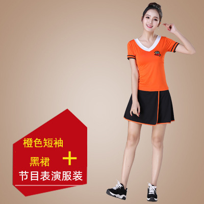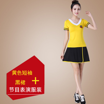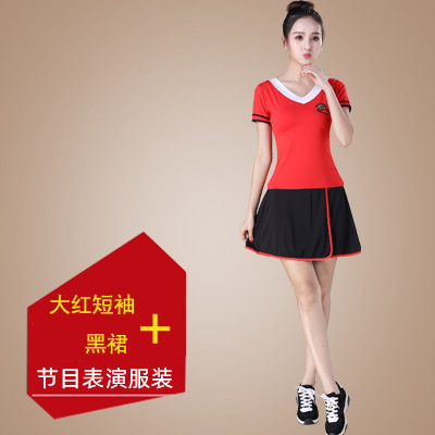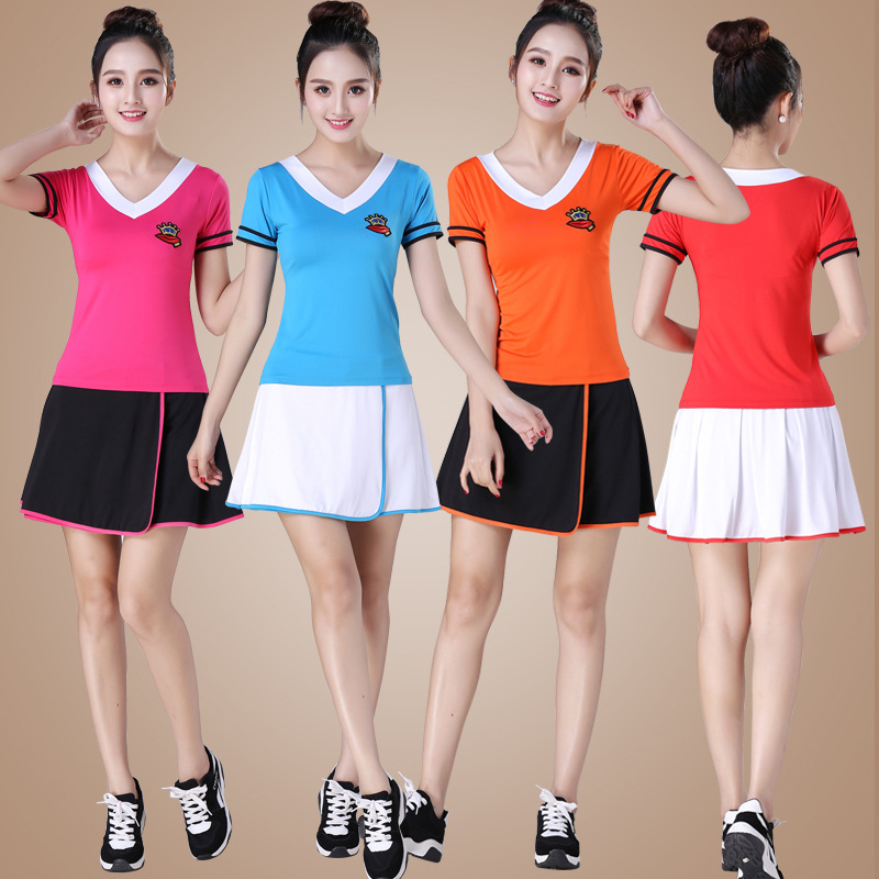 | nameOriginal | Square dance clothing summer new short sleeve jacket cheerleading sportswear dancing skirt performance clothing a generation of hair |
