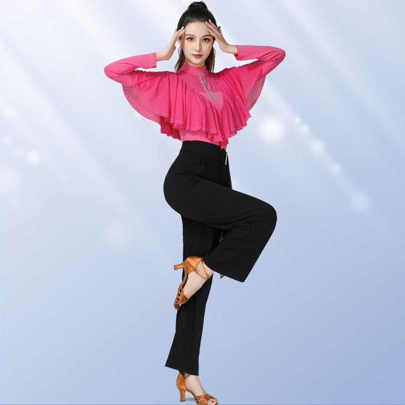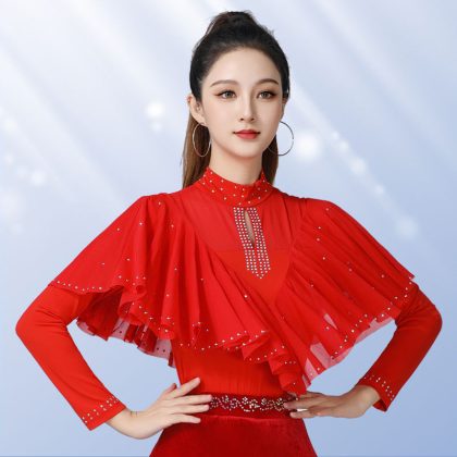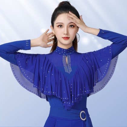 Square dance modern dance top new women's diamond-embedded stand collar long-sleeved clothes elegant dance Latin dance clothes gitba clothes