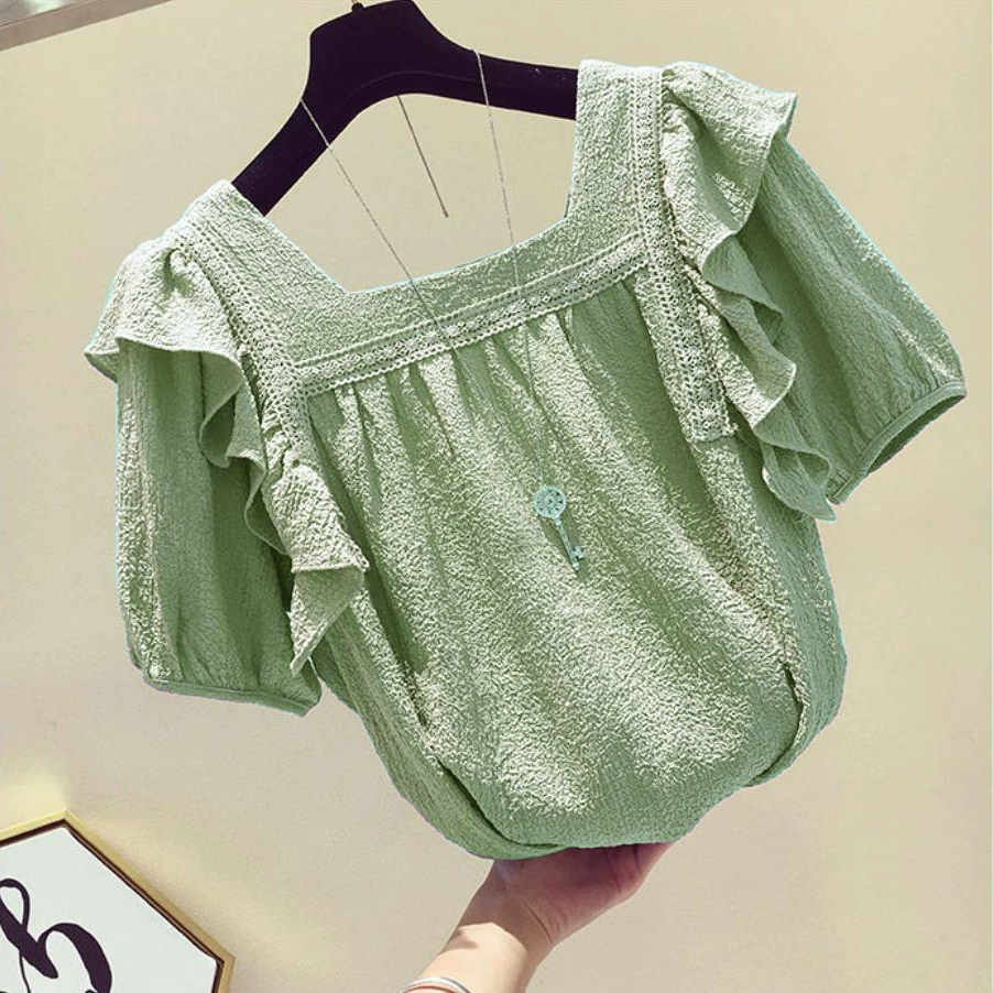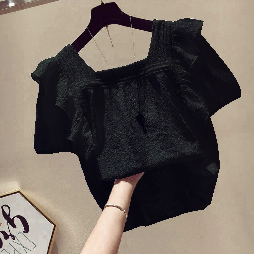 | nameOriginal | Square-neck short-sleeved loose ruffled pleated chiffon shirt |