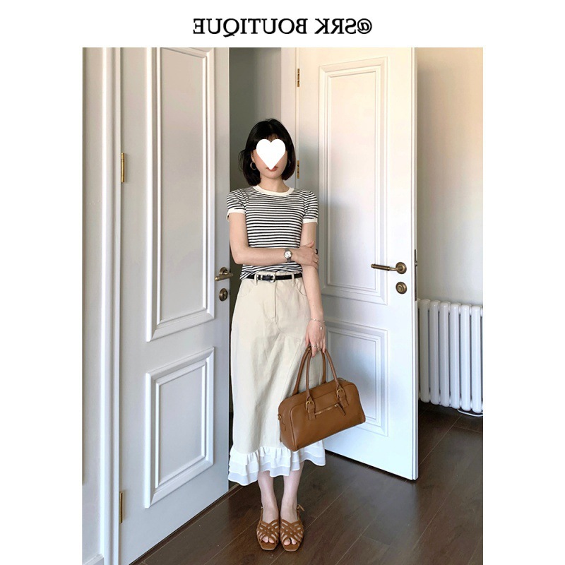| nameOriginal | SRK Classic Black and White Stripe Design Short-sleeved Sweater Elegant All-match T-shirt Round Neck Slim-fit Short |
