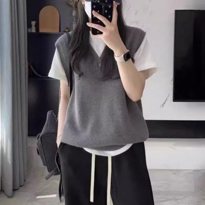| nameOriginal | Stacked Wool V-neck Knitted Vest Women's Outer Wear 2024 Spring and Autumn New Retro College Style Sweater Vest Jacket |