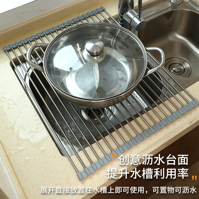 | nameOriginal | Stainless Steel Foldable Drain Rack for Sink Roller Curtain Drying Rack for Drying Dried Vegetables and Fruits and Vegetables |
