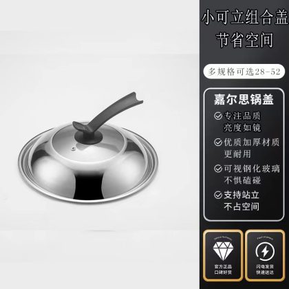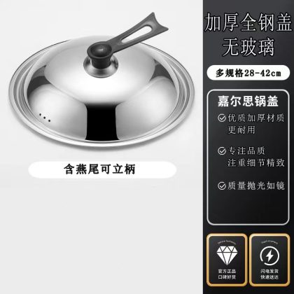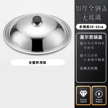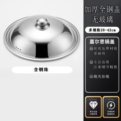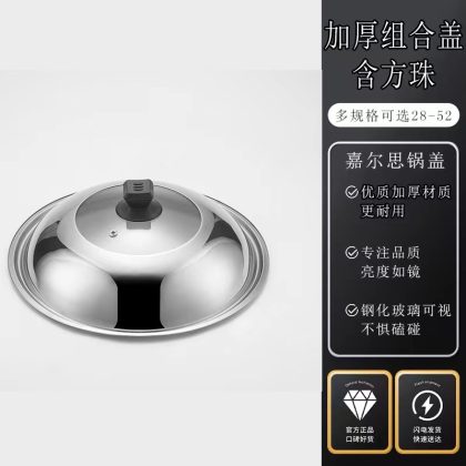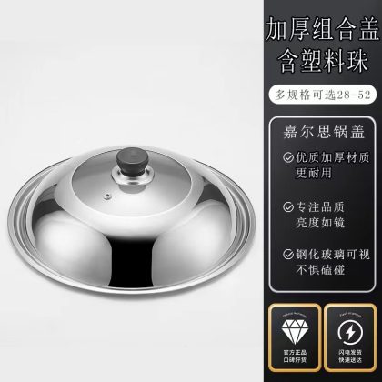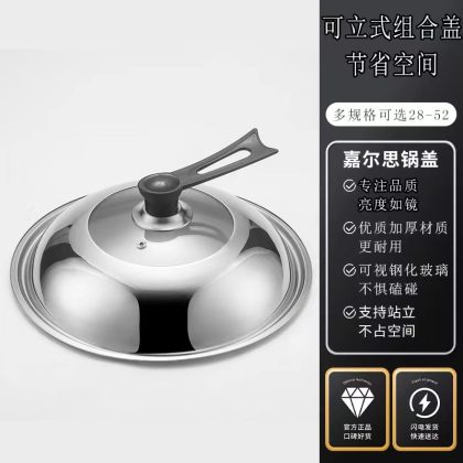 Stainless Steel Pot Lid Explosion-proof Glass Visual Combination Lid 32/34/36 Non-magnetic Household Flat Bottom Wok Lid