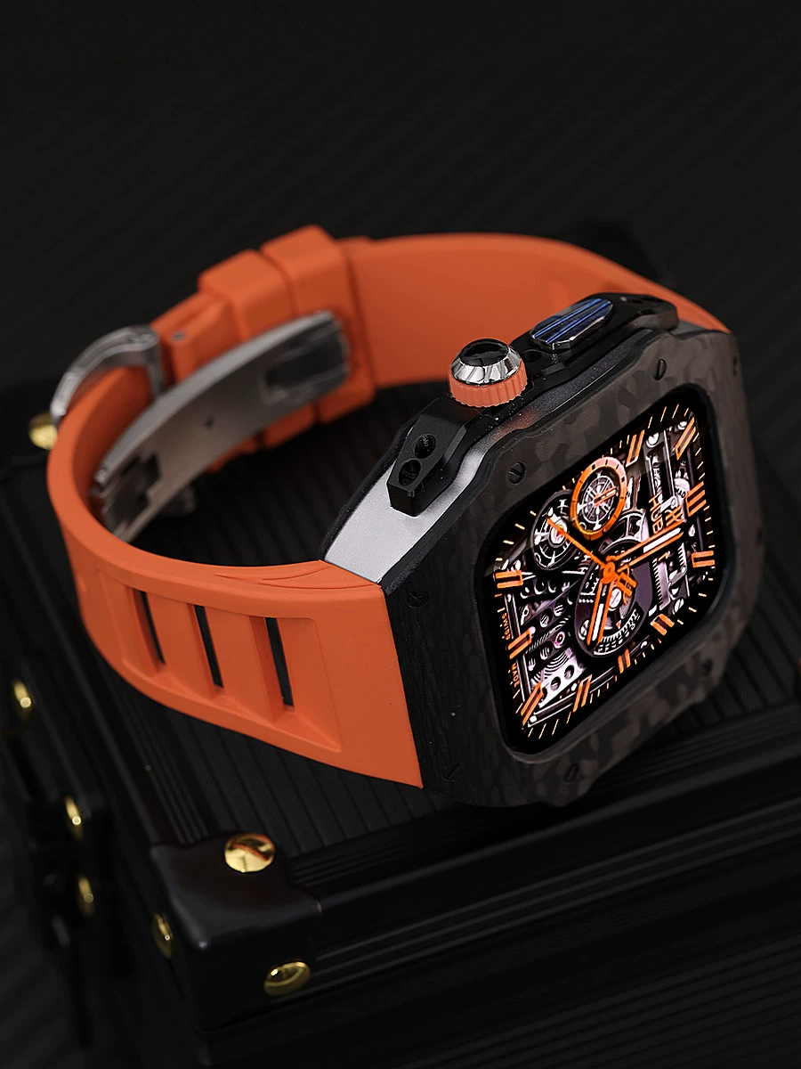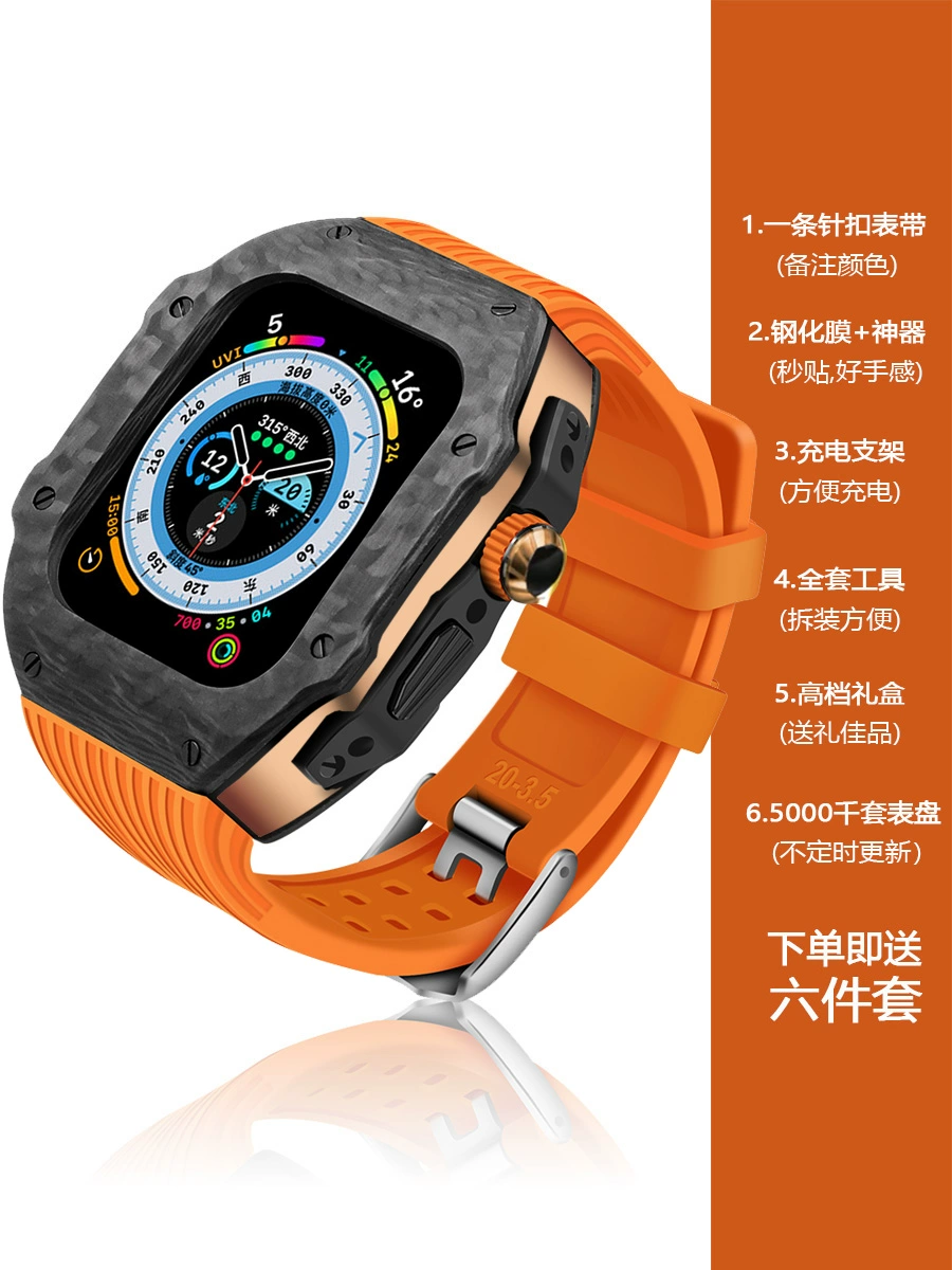 Star chart suitable for ultra1/2 carbon fiber protective case cover 49mm Apple watch iwatch12345678se12 fluorine rubber strap automatic butterfly buckle pin buckle silicone modification Richard Chao