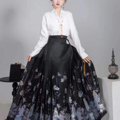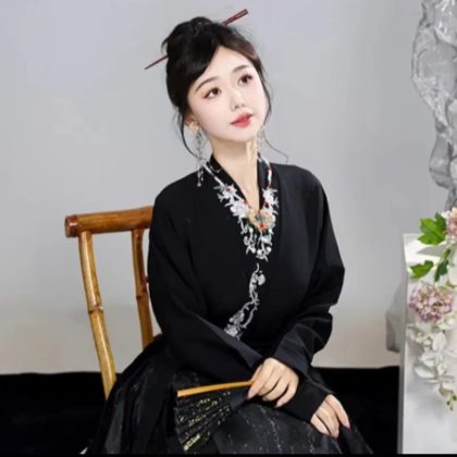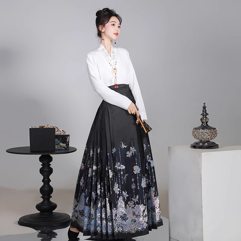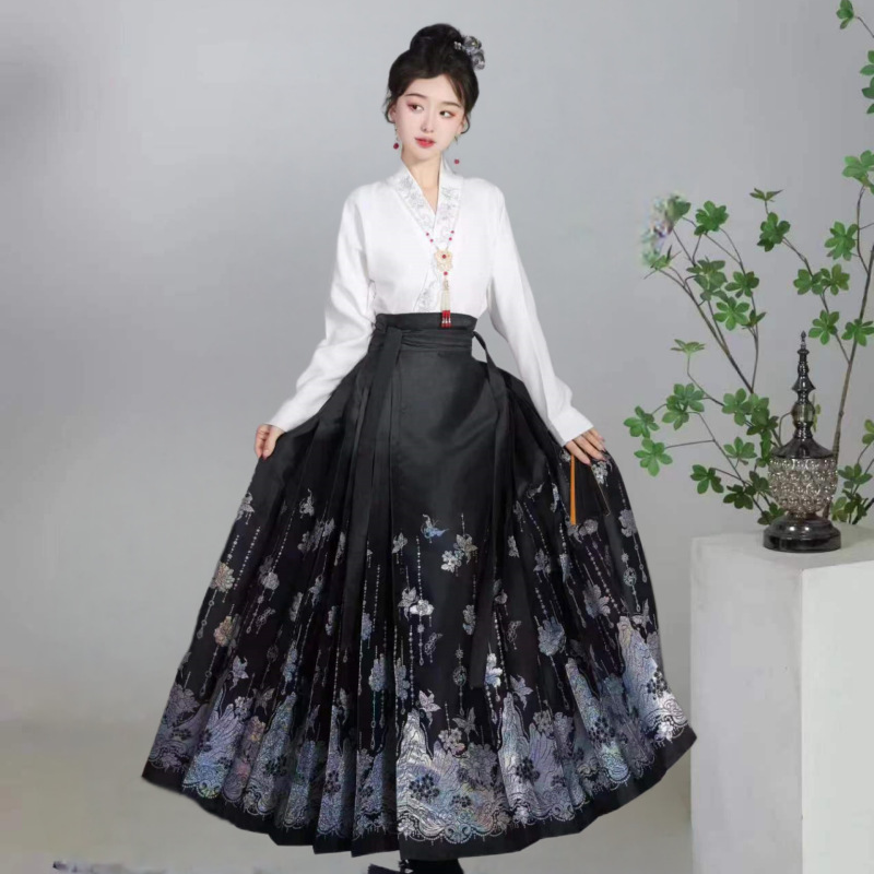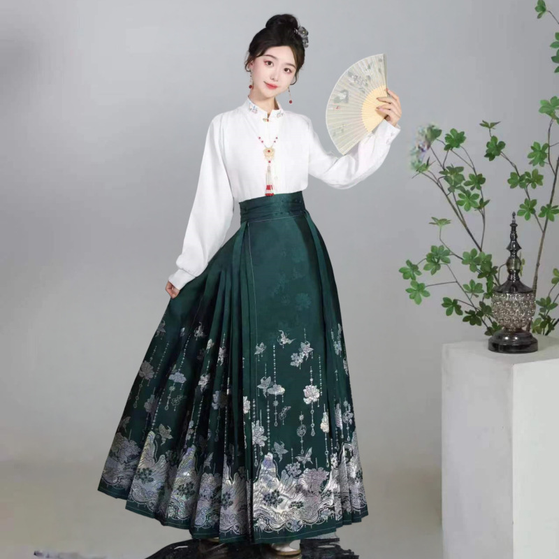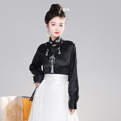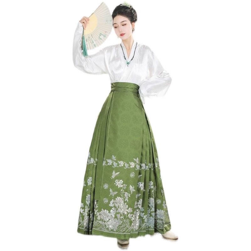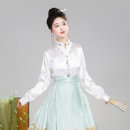 خطوة بخطوة زهرة المنسوجة الحلزون الفضي الجديد النمط الصيني سترة تنورة دعوى Hanfu المرأة يوميا ركاب نخب الملابس تحسين أعلى