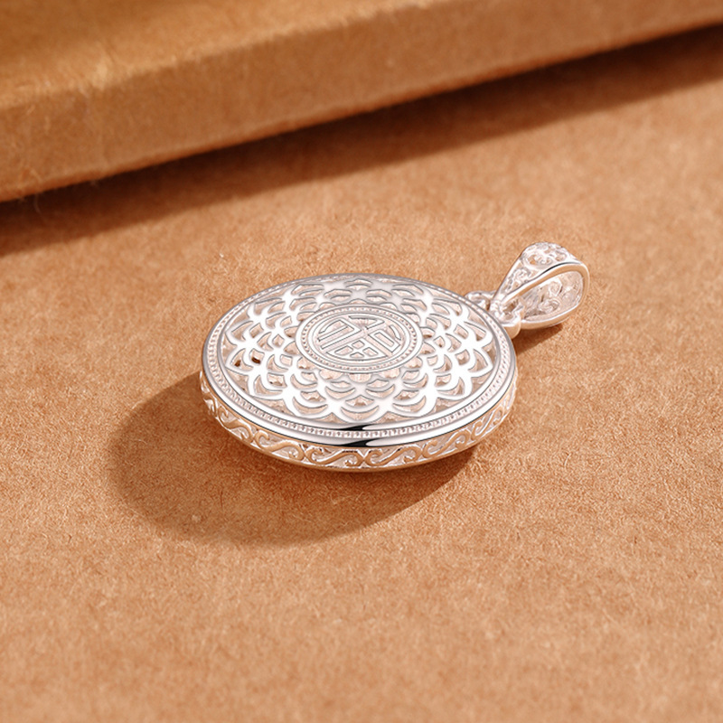 | nameOriginal | Sterling silver eight treasure compass pendant men's and women's lucky character transfer hollow lotus s999 silver necklace auspicious fortune pendant |