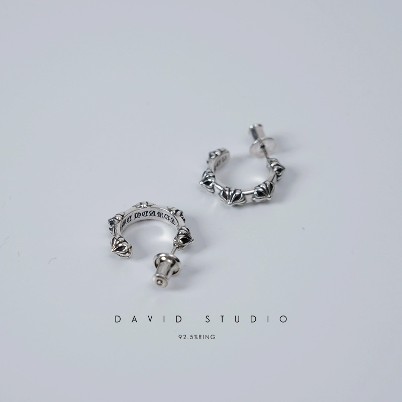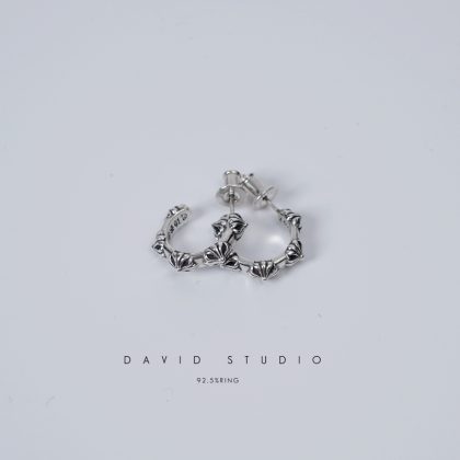 | nameOriginal | Sterling Silver Half Circle Cross Flower Distressed Luo Zhixiang Earrings |