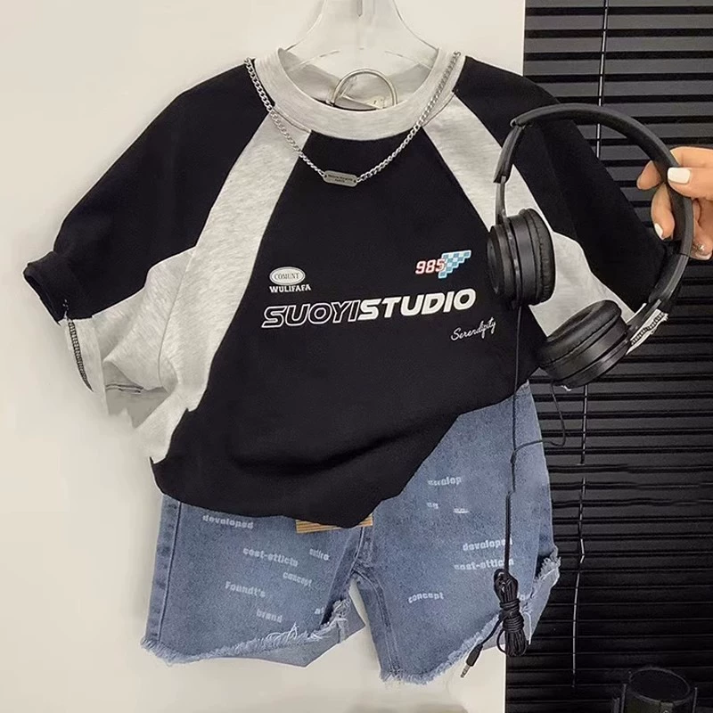 | nameOriginal | Stitched contrasting color short-sleeved thin handsome little boy summer dress |