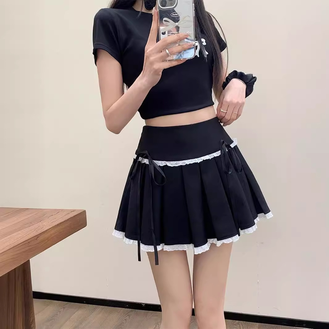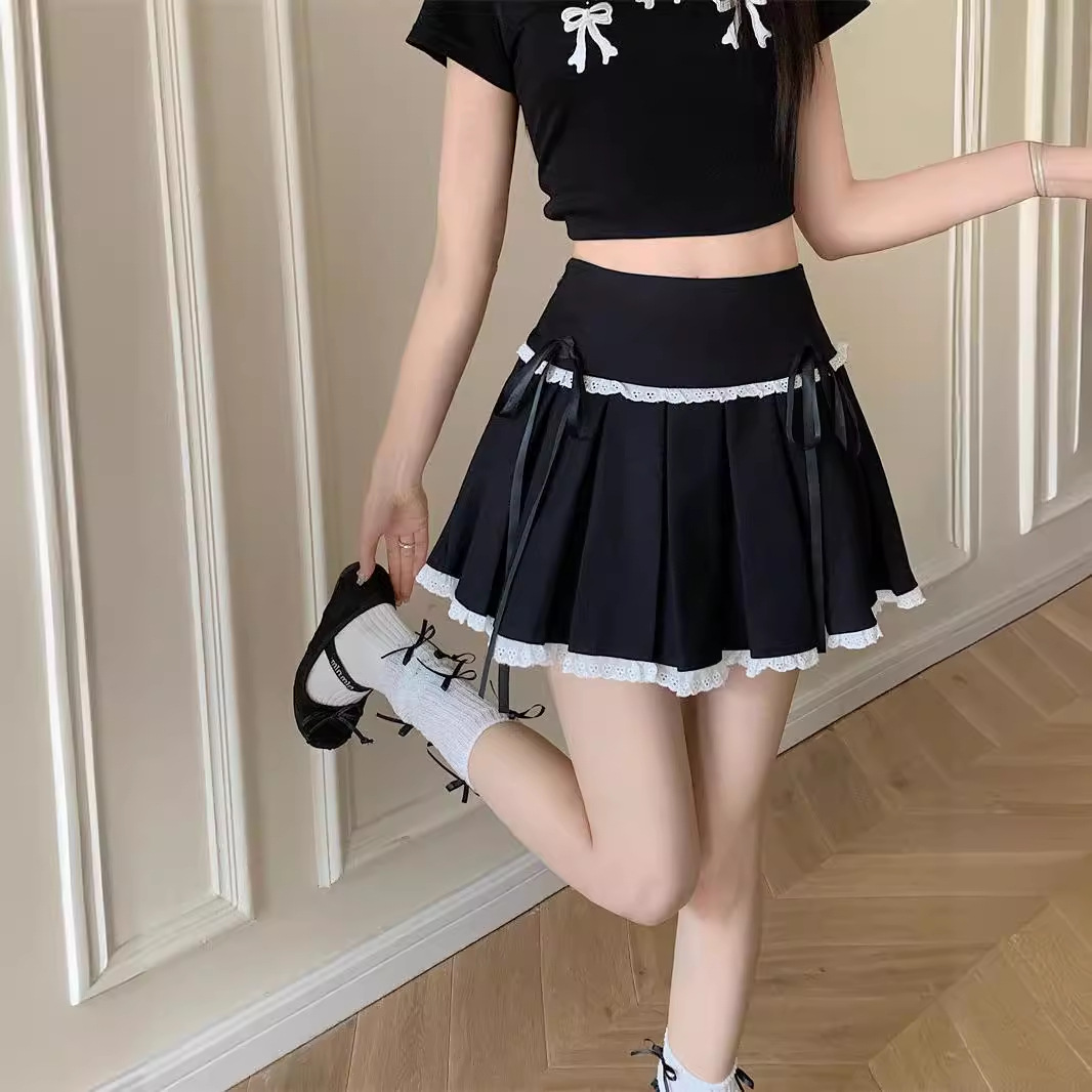 | nameOriginal | Stitching Lace Suit Pleated Skirt Women's 2024 Summer New Anti-Glow Slim A- Line Pants |