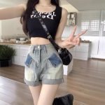 | nameOriginal | Straight Contrast Color Curl Denim Shorts Women's 2024 Summer New High Waist Loose All-match A- shaped Wide-leg Hot Pants |