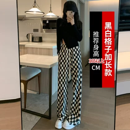| nameOriginal | Straight spring and autumn style high-waisted narrow plaid trousers |