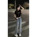 | nameOriginal | Straight summer high waist ripped women's casual pants |