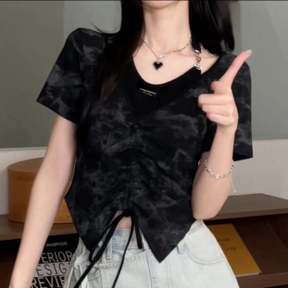 | nameOriginal | Strappy fat girl slimming cover V-neck shoulder fake two pieces |