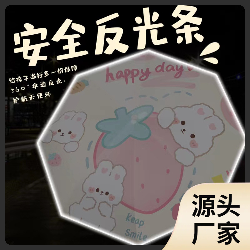 | nameOriginal | Strawberry Rabbit Security Rebound Children's Sunny Umbrella Female Primary School Students Sunny Rain Dual-Use School Folding Automatic Umbrella |