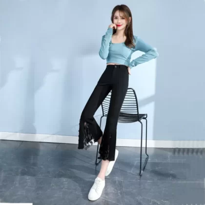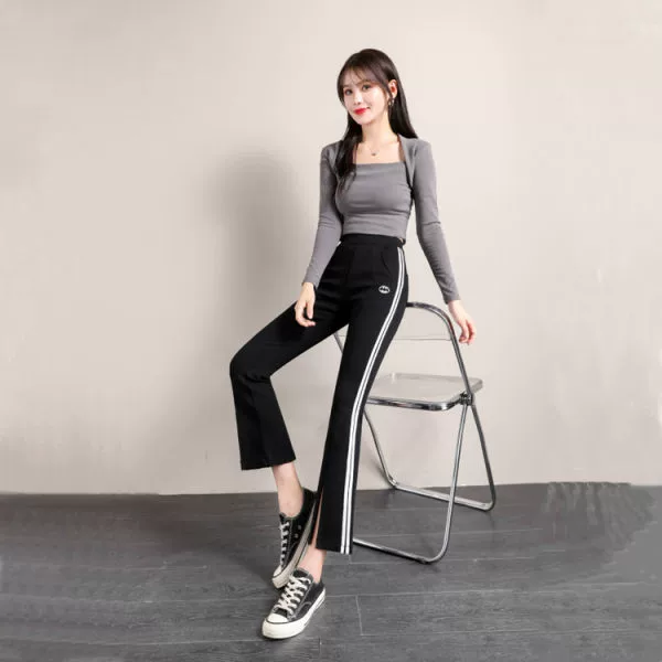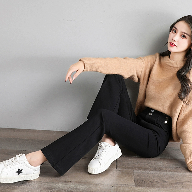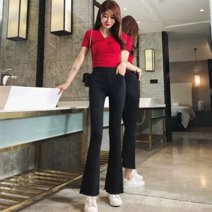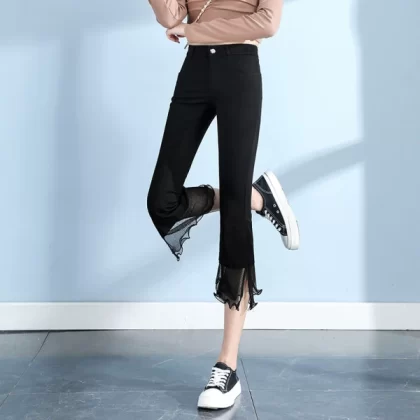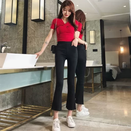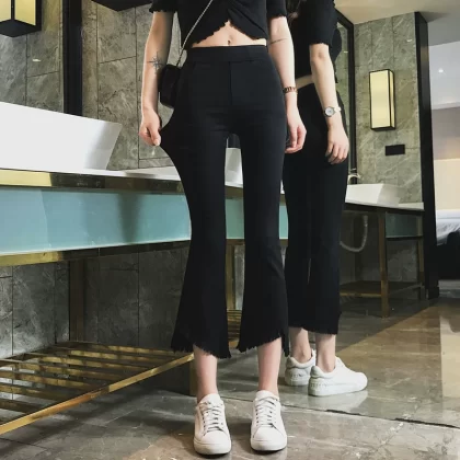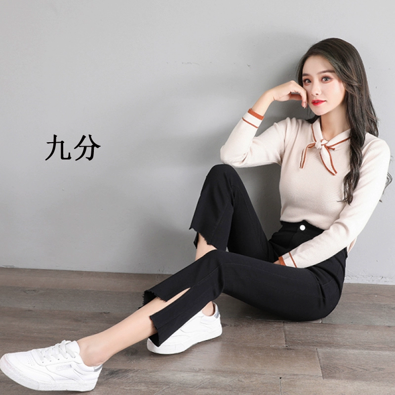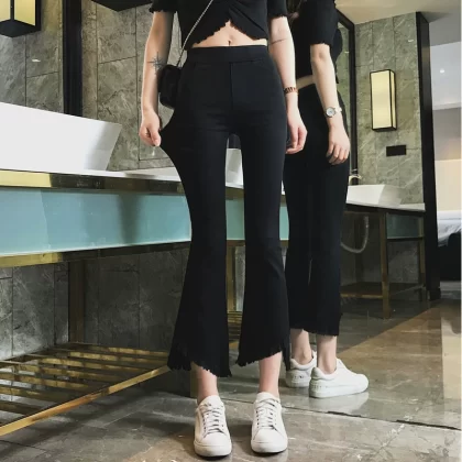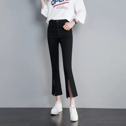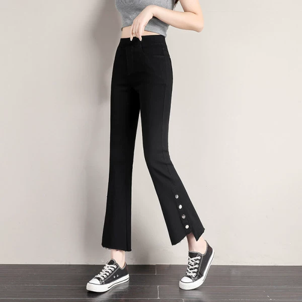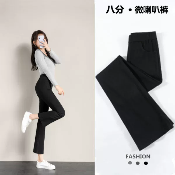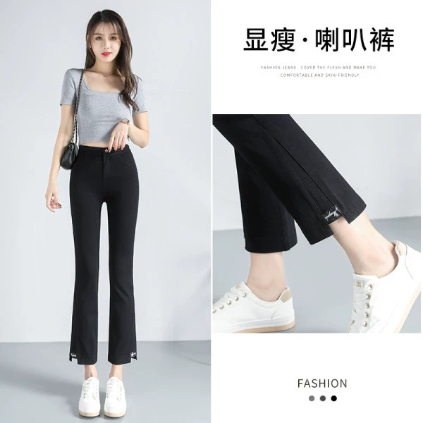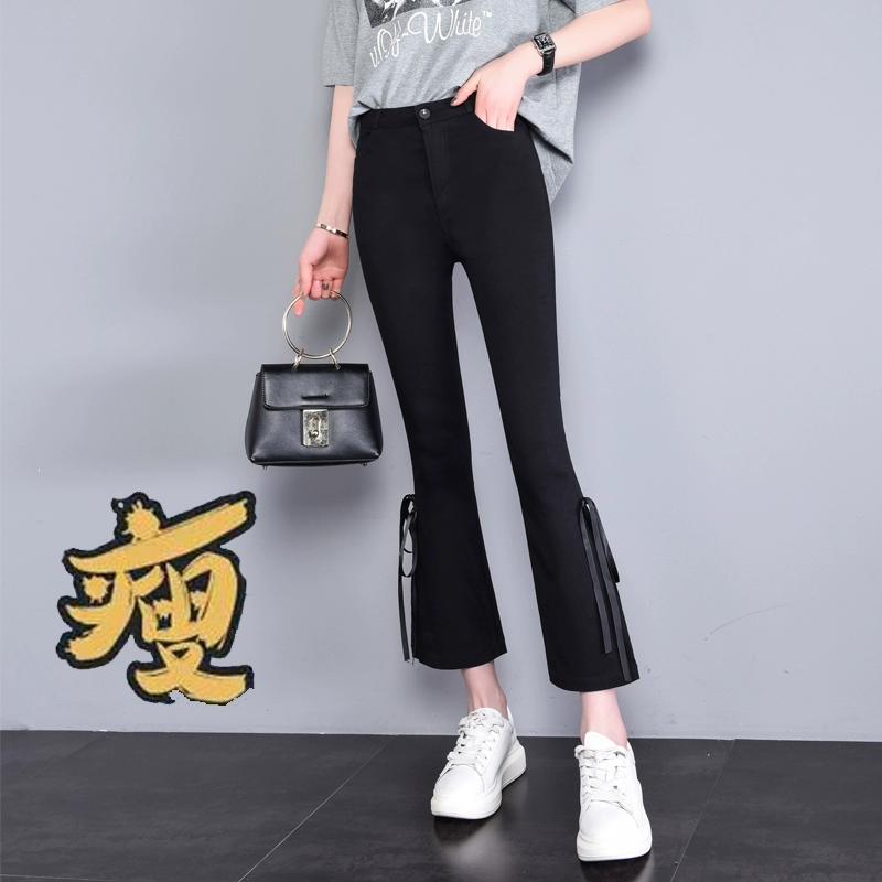 | nameOriginal | Stretch spring and summer nine-point high-waist slim black bootcut pants |