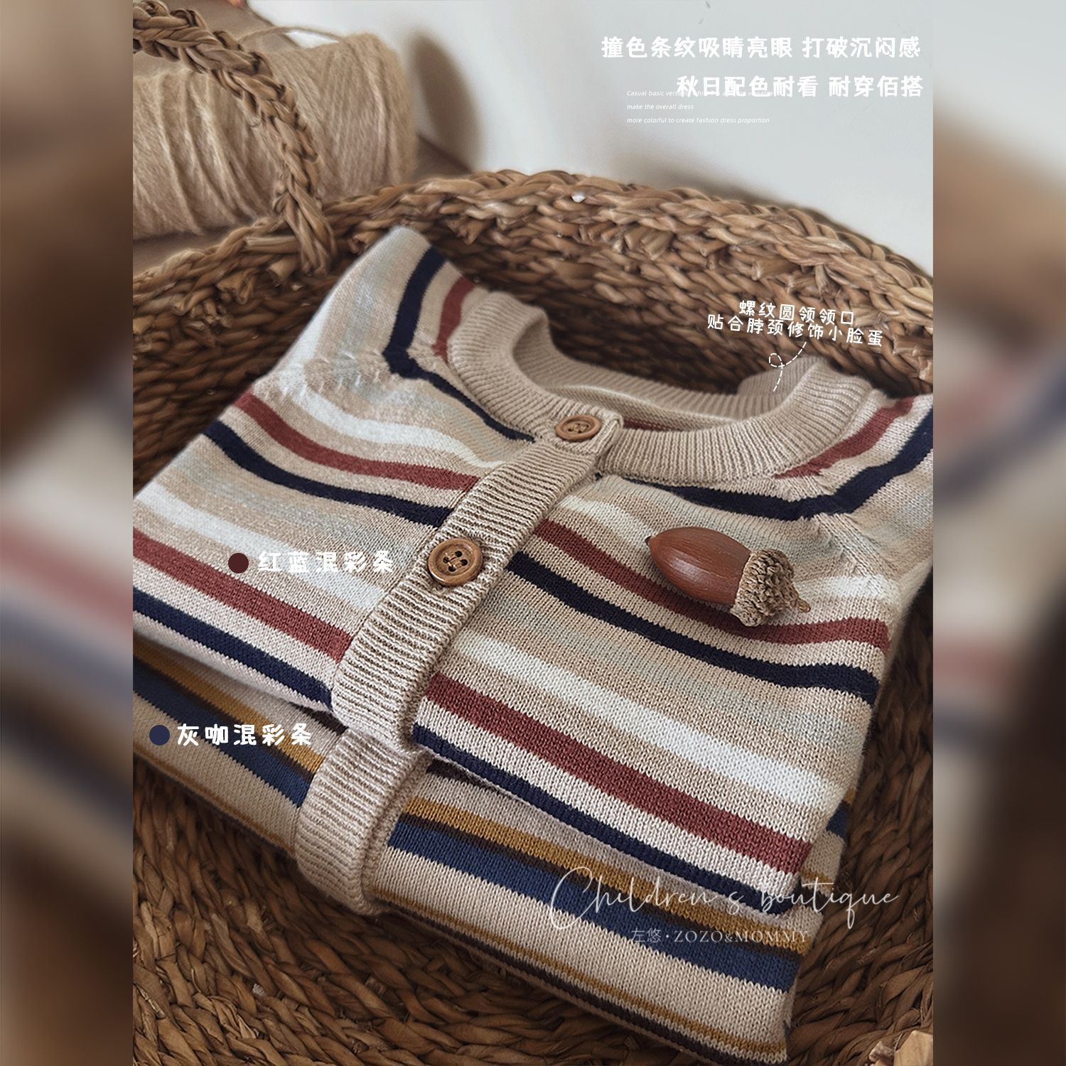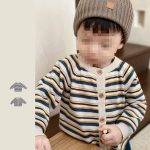 Striped casual contrast color cardigan autumn and winter infant boys and girls baby coat knitted outer wear all-matching 0099A031