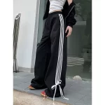 | nameOriginal | Striped high-waisted loose and versatile black trousers with bow tie |