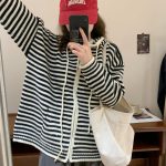 | nameOriginal | Striped Hooded Zipper knitted cardigan for women 2024 spring new Korean style lazy style loose all-match sweater coat |
