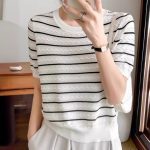 | nameOriginal | Striped Ice Silk Crewneck Knitted Short-sleeved Hollow Summer Slim New Style Western Style Thin Loose T-shirt Top Korean Style |