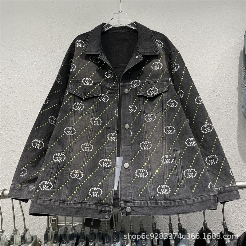 | nameOriginal | Striped Letter Personalized Hot Rhinestone Denim Jacket Women's 2024 Spring and Autumn New Lazy European Fashion Large Edition Top |
