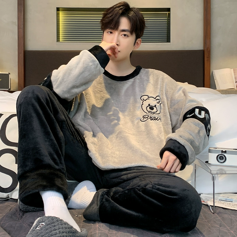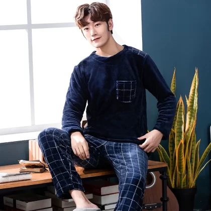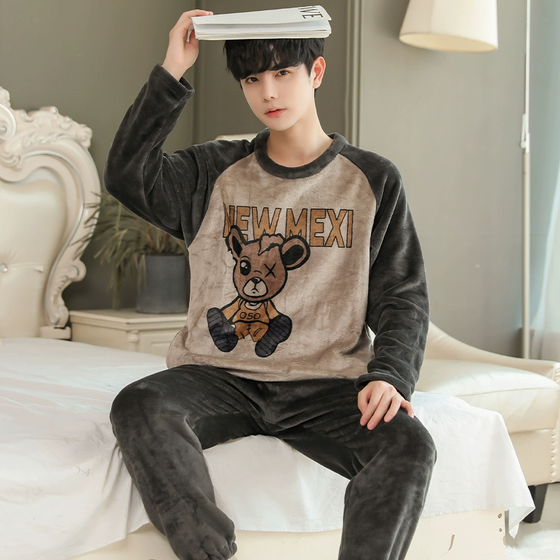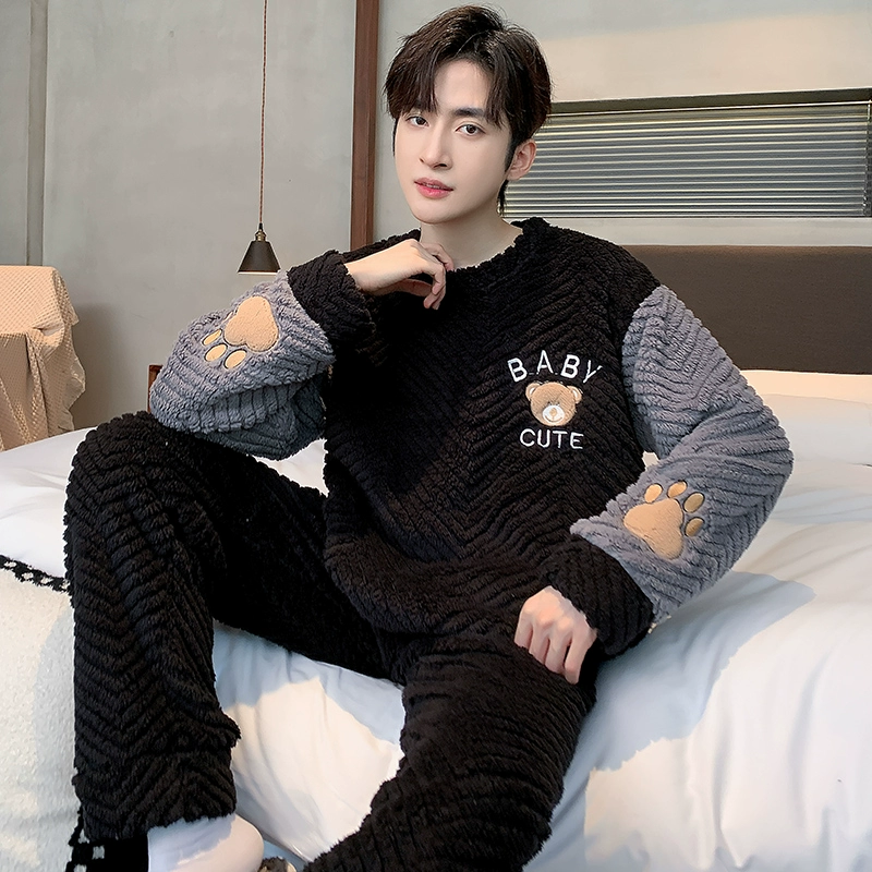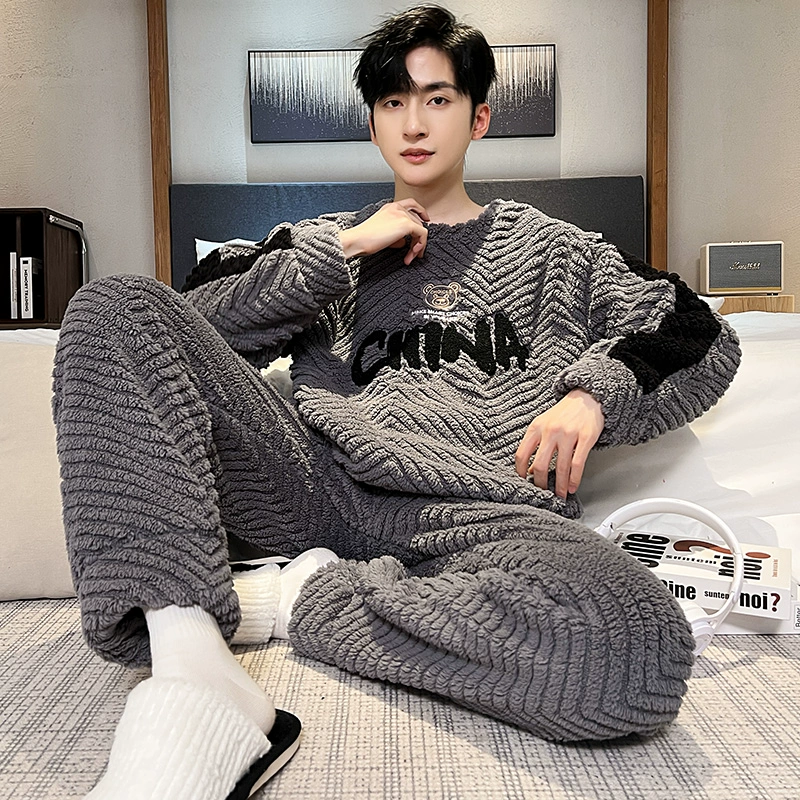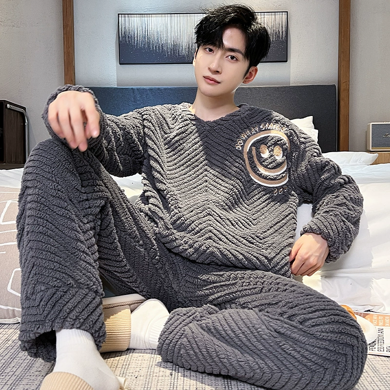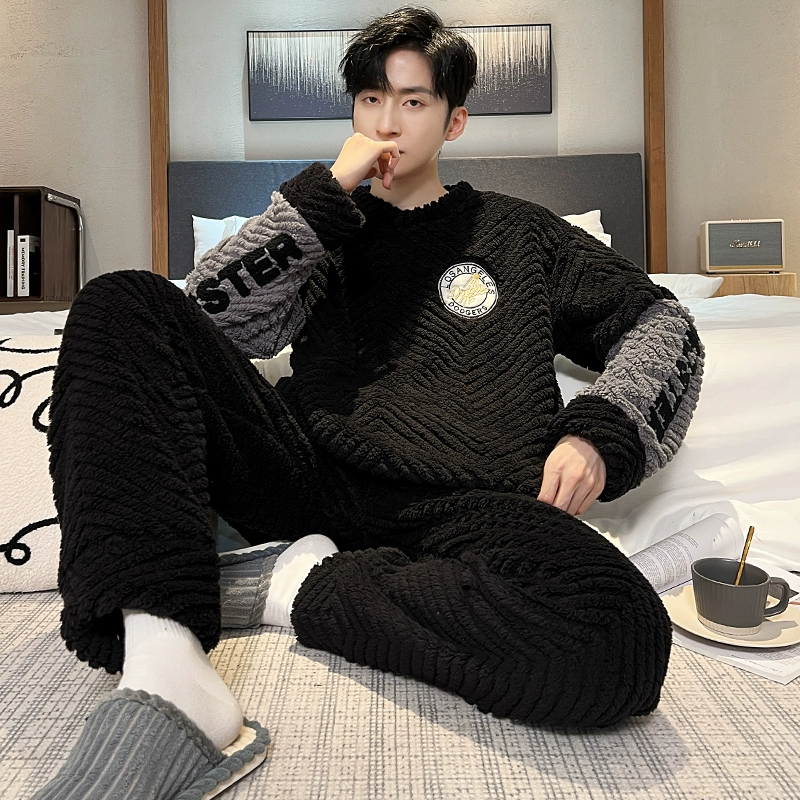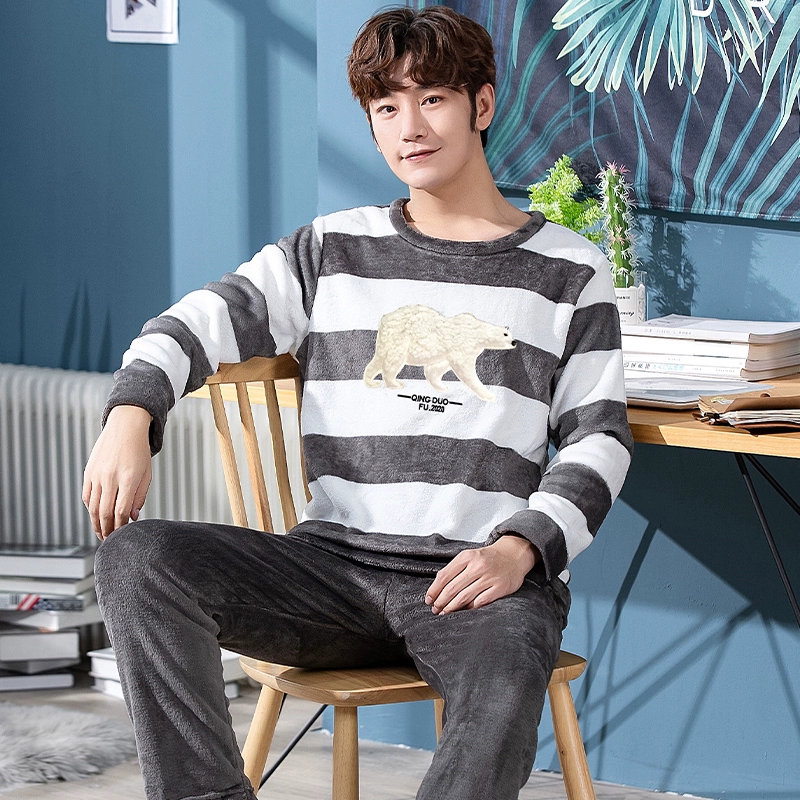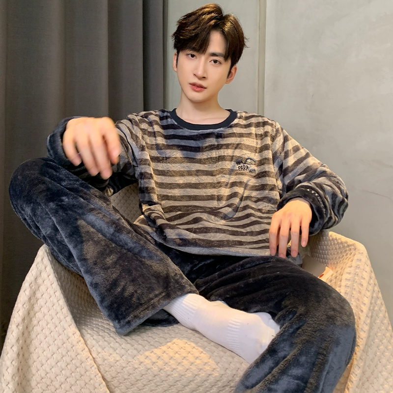 | nameOriginal | Striped Pajamas Men's Autumn and Winter Coral Fleece Warm Thick Velvet Youth Flannel Home Clothes Suit for Outerwear |