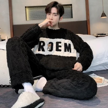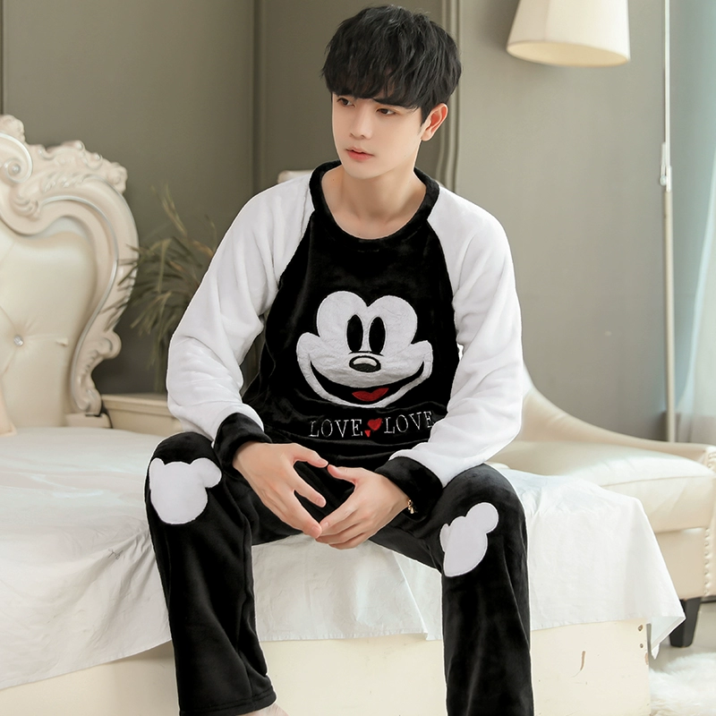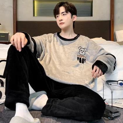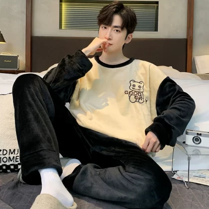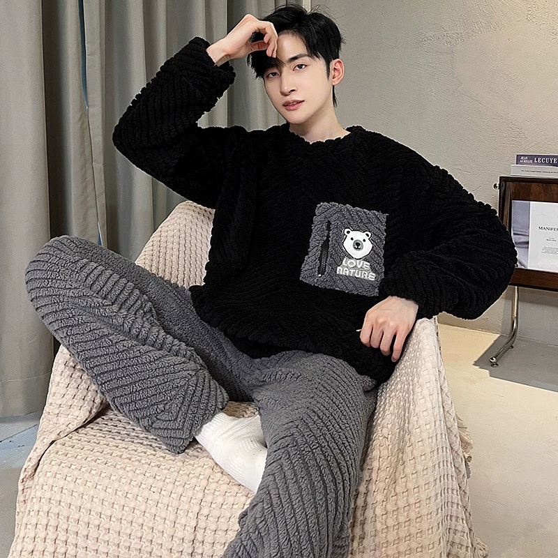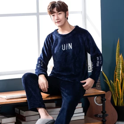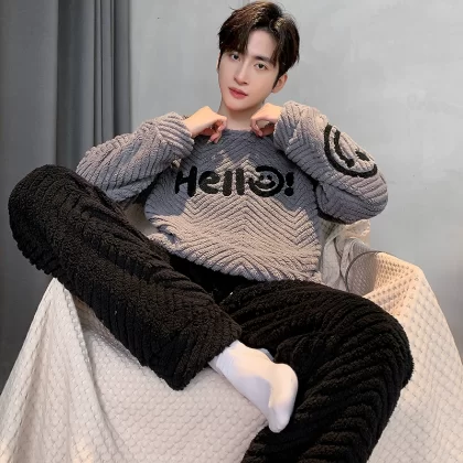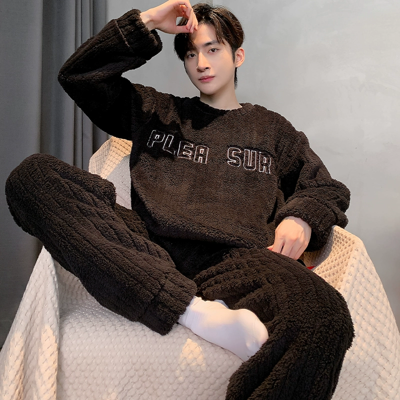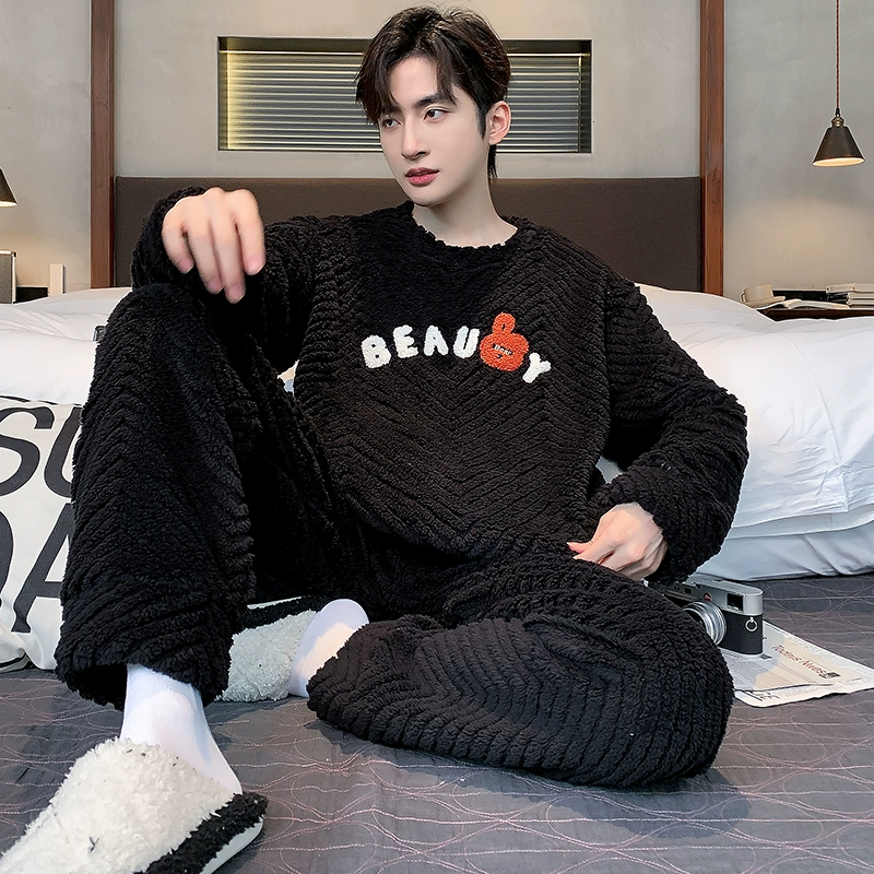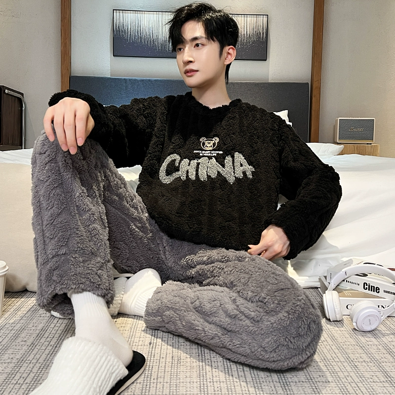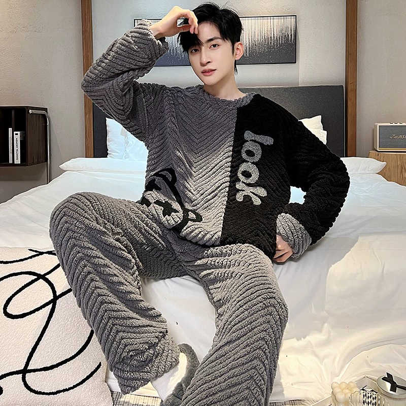 | nameOriginal | Striped Pajamas Men's Autumn and Winter Coral Fleece Warm Thick Velvet Youth Flannel Home Clothes Suit for Outerwear |