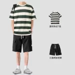 | nameOriginal | Striped short-sleeved T-shirt men's Japanese heavyweight cotton T-shirt set with ins handsome workwear casual shorts suit |