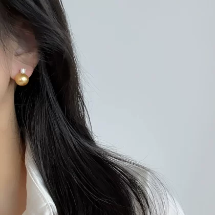 | nameOriginal | Strong light round South Sea golden crystal pearl Princess Diana earrings all-over sterling silver light luxury high-end earrings versatile for women |