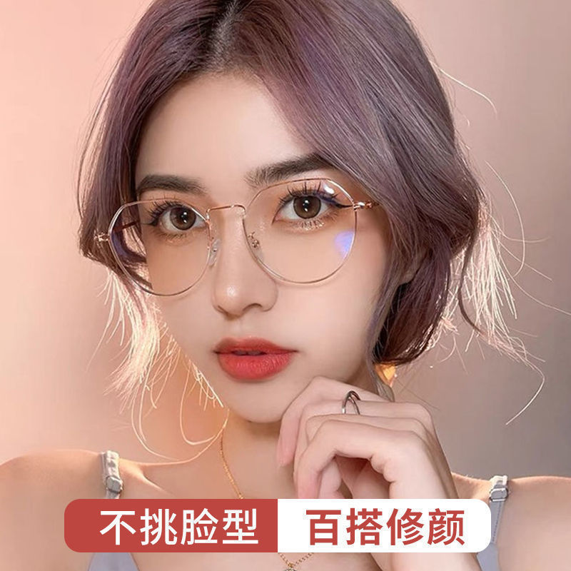 نظارات قصر النظر للطلاب للنساء مضادة للضوء الأزرق البصري على الطراز الكوري على الإنترنت مشهورة ذات قيمة وجه عالية وجه مستدير يظهر الوجه إطار نظارات صغير عادي