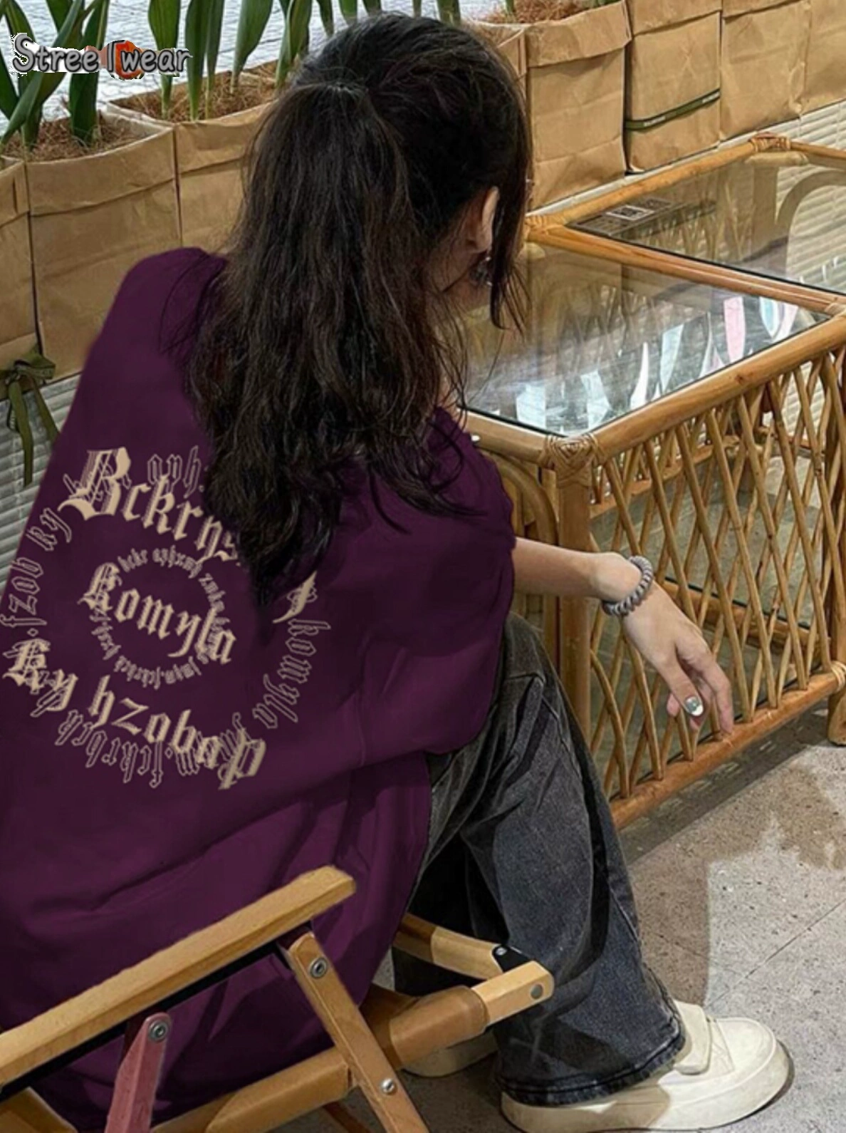 Stunning printed grape purple loose and versatile short sleeves